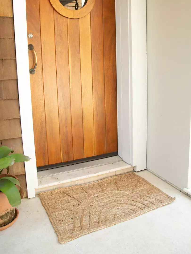 The perfect back, side or front door rug! This beautiful Jute Rug is crafted and woven from natural fibers with a braided overlay in the shape of a sun. Hello Sunshine! We recommend using a rug pad to prevent slippage and protect your floor!