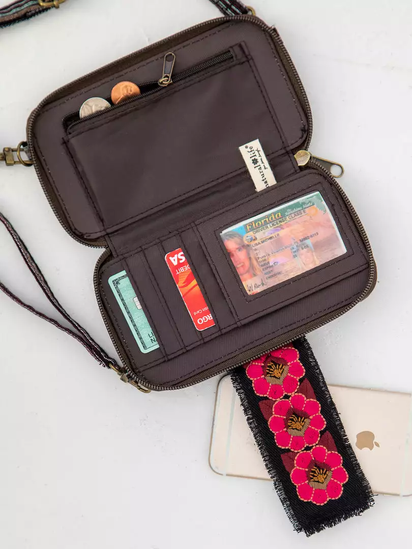 The Embroidered Wristlet is so cute & convenient… because everyone loves to be hands-free! It’s made from the prettiest woven fabrics and is perfect for holding your phone while you’re out! It comes with interchangeable wrist and shoulder straps for easy carrying, too! It also features RFID blocking as an added safety feature, which we love!