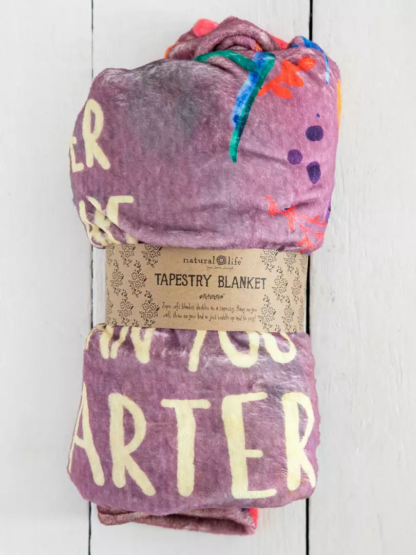 Blanket or Tapestry?! It’s both! The Tapestry Blanket is super snug and soft, yet lightweight for any time of year. Snuggle under it for reading a good book, watching movies, or hanging with friends…or bring it outside on a chilly day. Get creative with our tapestry blanket and hang it on a wall that needs brightening, especially if you work from home! Display it on your bed or sofa. Store it in one of our boho baskets and smile all over again when it’s time to use it. We even bring ours when we travel because we all know it’s always nice to have something cozy from home. It’s an ideal gift for any occasion, from a birthday present to a thank you gift. Make someone’s day by sending a snuggle-worthy blanket and a kind message.