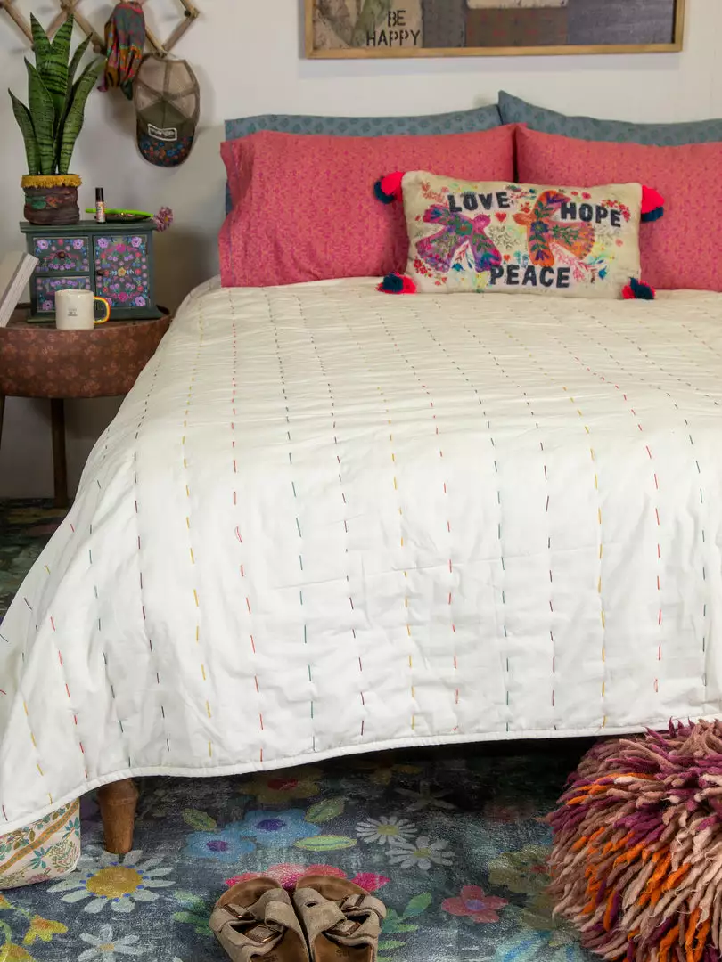 We love beautiful bedding! The Border Print Stitch Quilt is made of super soft natural cotton and features rainbow hand stitching! It looks so cute as a set or you can mix and match with any of our boho printed sheets and pillowcases! Good bedding is so important… you’ll be obsessed!