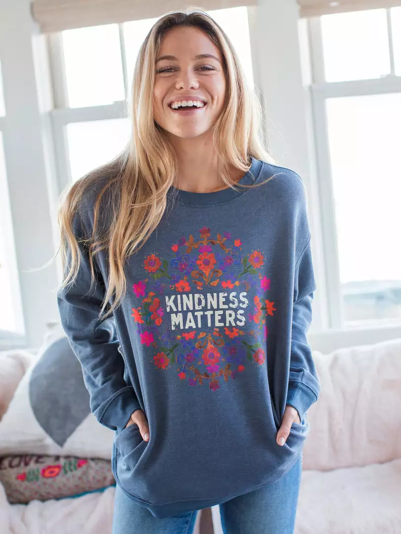 Oversized and oh-so-comfy! This relaxed fit sweatshirt is perfect for cozying up at home, camping trips and everyday life! Each one comes printed with words that will inspire you & everyone who reads them! Oh, and it has pockets, which everyone loves!