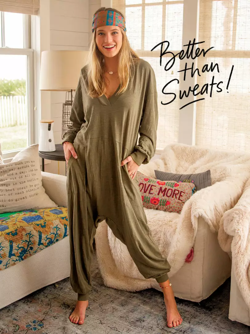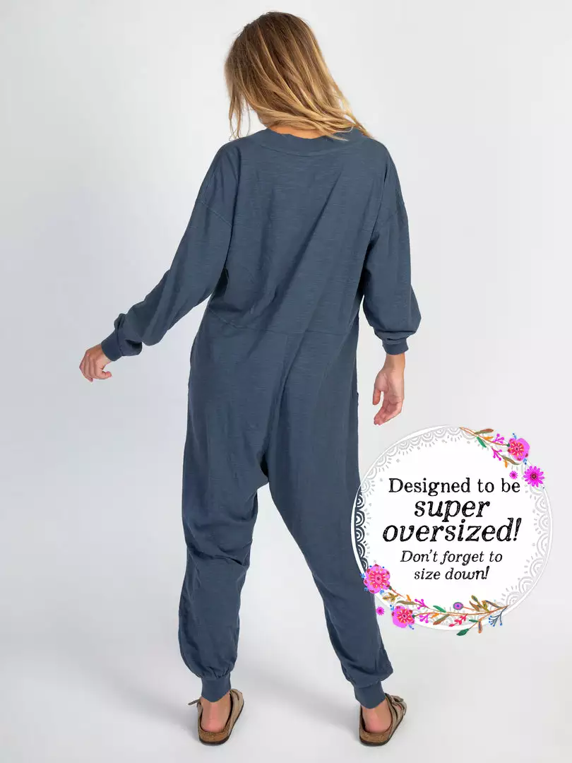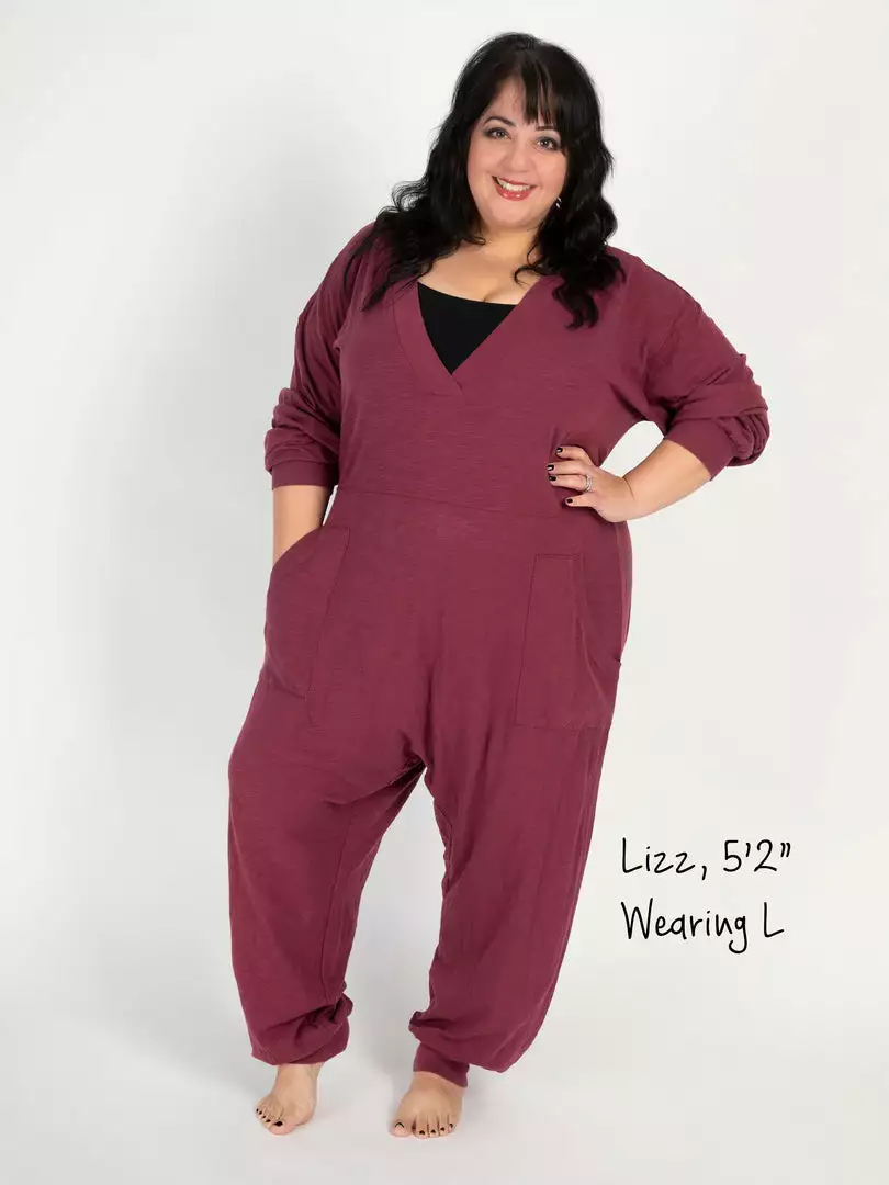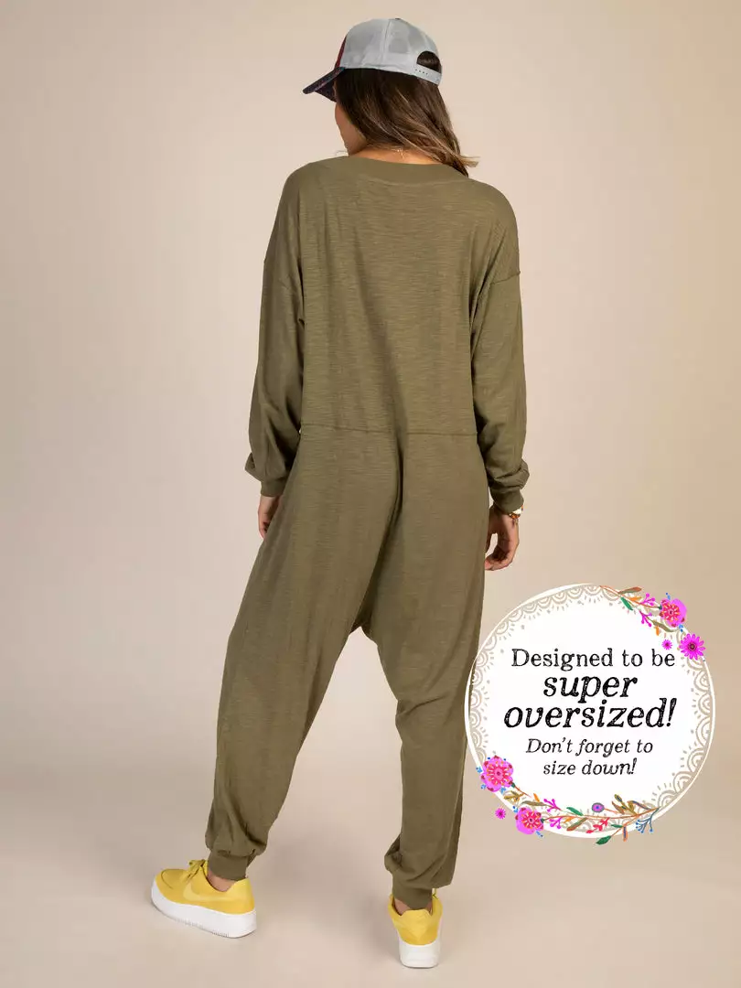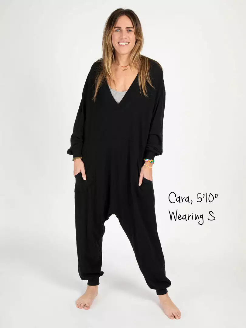 Sometimes you need something to throw on that is not only the comfiest outfit ever, but also cute enough to rock at the grocery store, dog walk or coffee run! The Johnnie Jumpsuit was designed to be super oversized with a drop crotch & a slouchy COZY fit! The low v-neck is perfect to pair with a colorful bandeau, cami or lace bralette. If you’re unsure what size to get, we recommend to sizing down two sizes!