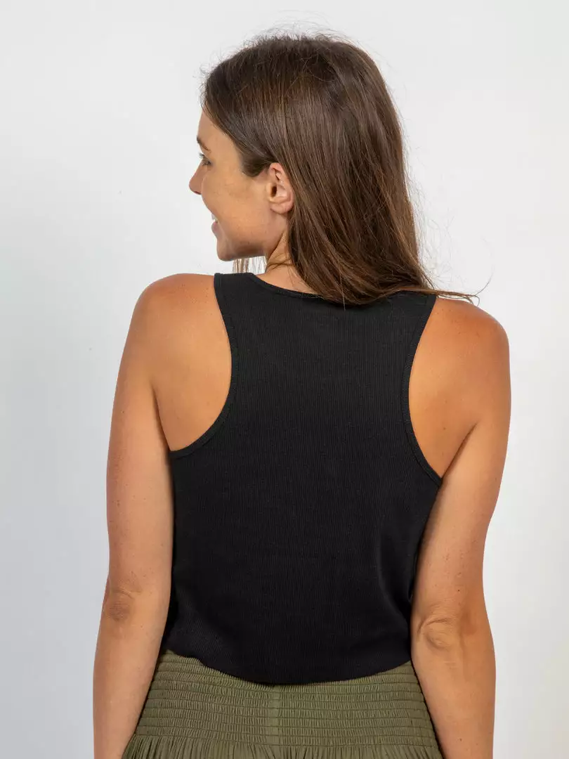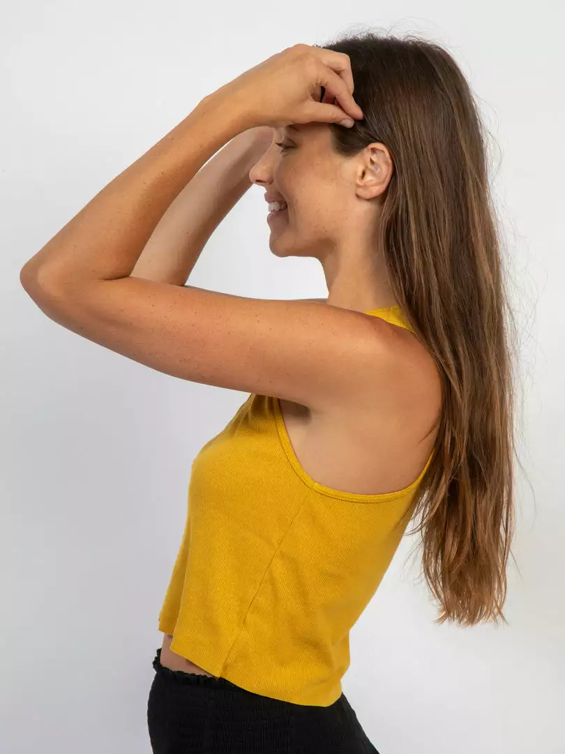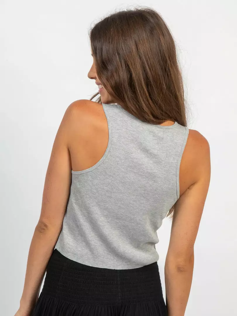 The perfect basic tank top! This cutoff racerback features a lightweight ribbed knit with a relaxed cropped fit! It’s such a staple piece to have because you can literally wear it with anything!