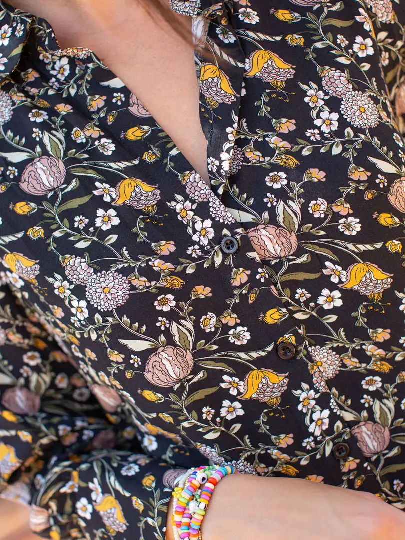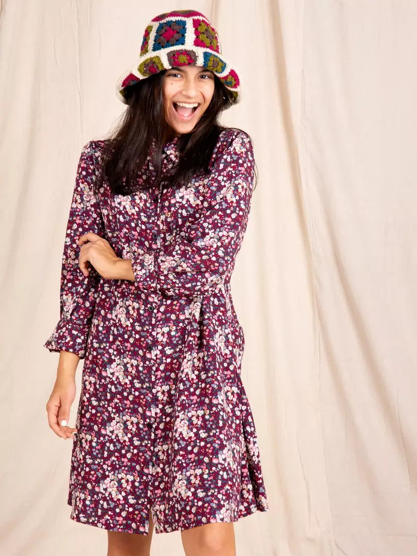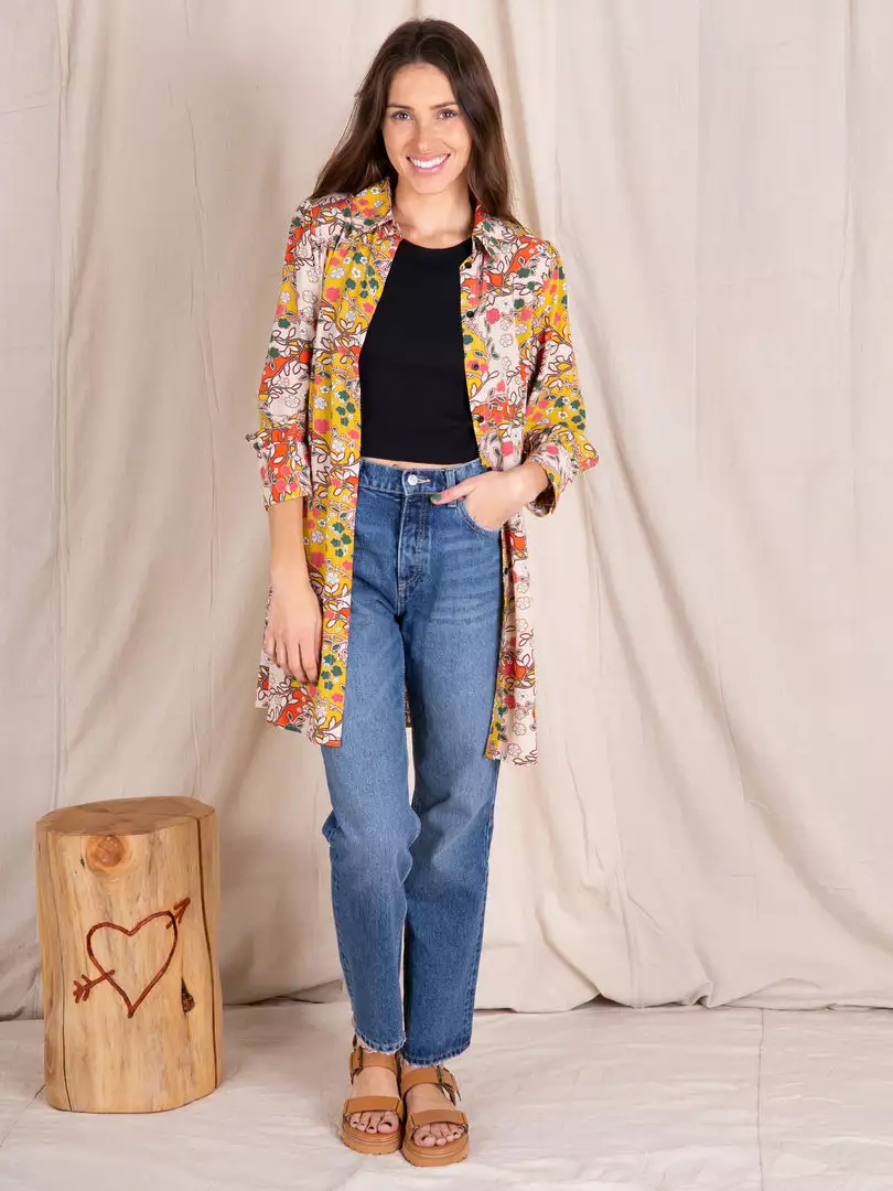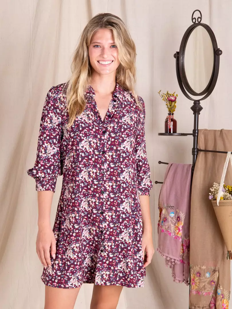 The Twiggy Mini Shirt Dress is one of our favorites! This mini dress features a pretty floral print, button-cuff sleeves and is slightly fitted for a flattering fit! It’s SO comfy and easy to wear and is such a classic piece. Easily style it with cool jewelry, a fedora or jean jacket. It’s literally like a basic button-down shirt, but as a dress! It does tend to run on the smaller size, we recommend sizing up for a looser fit!