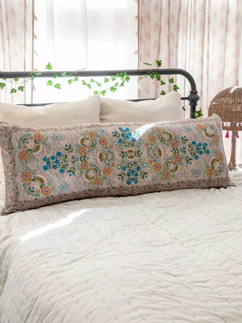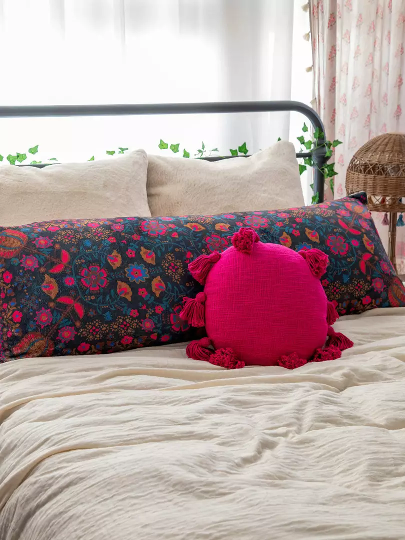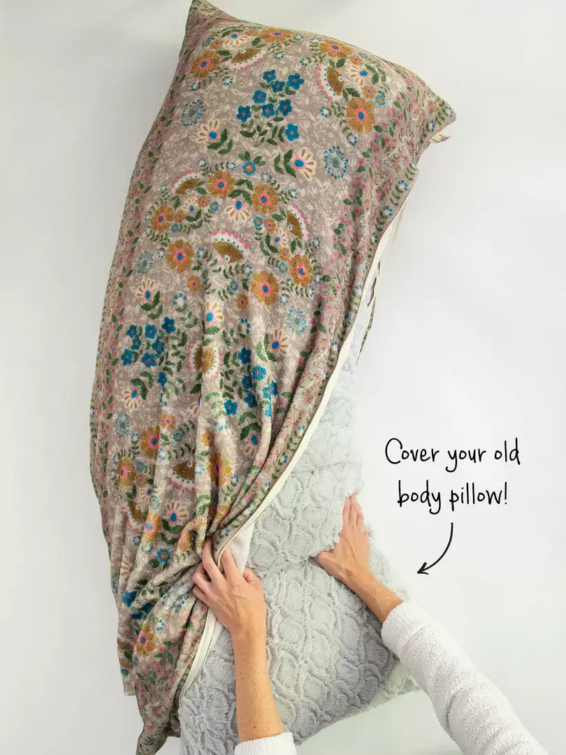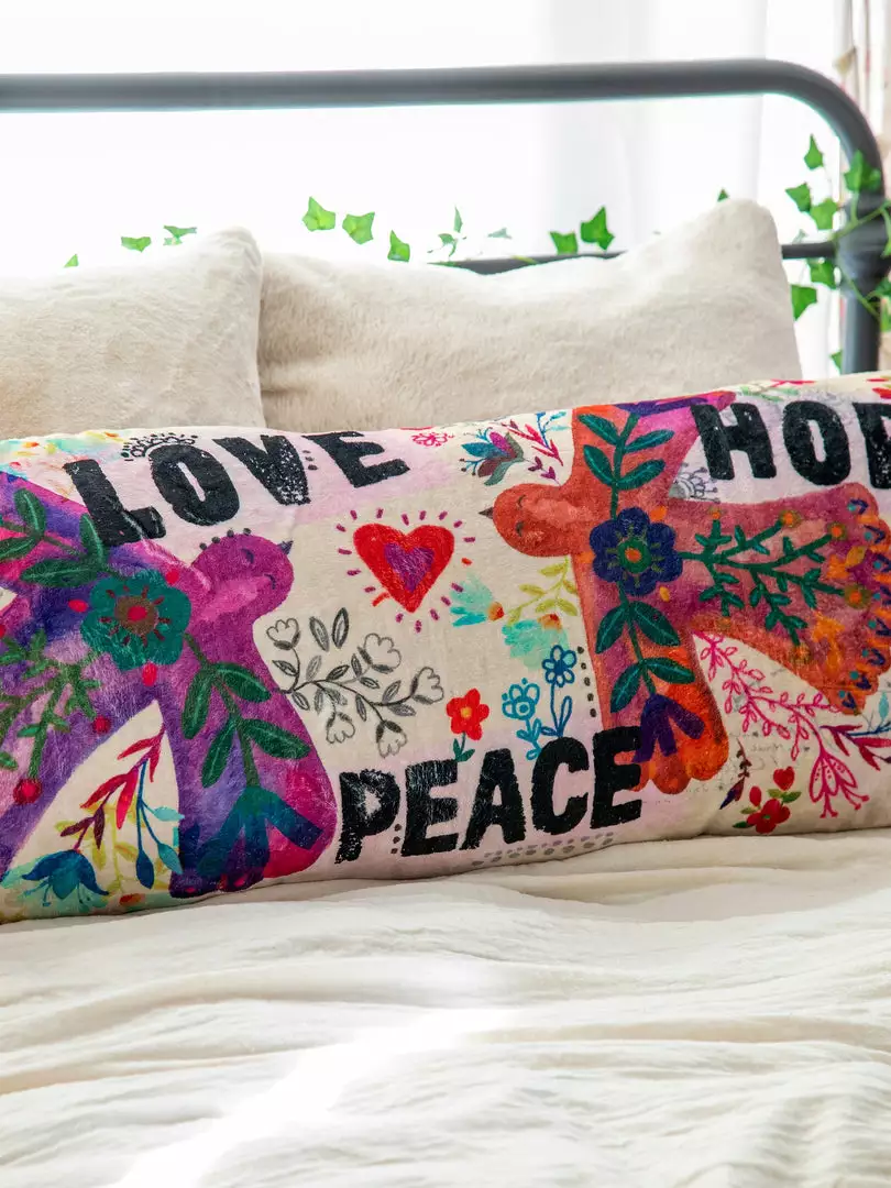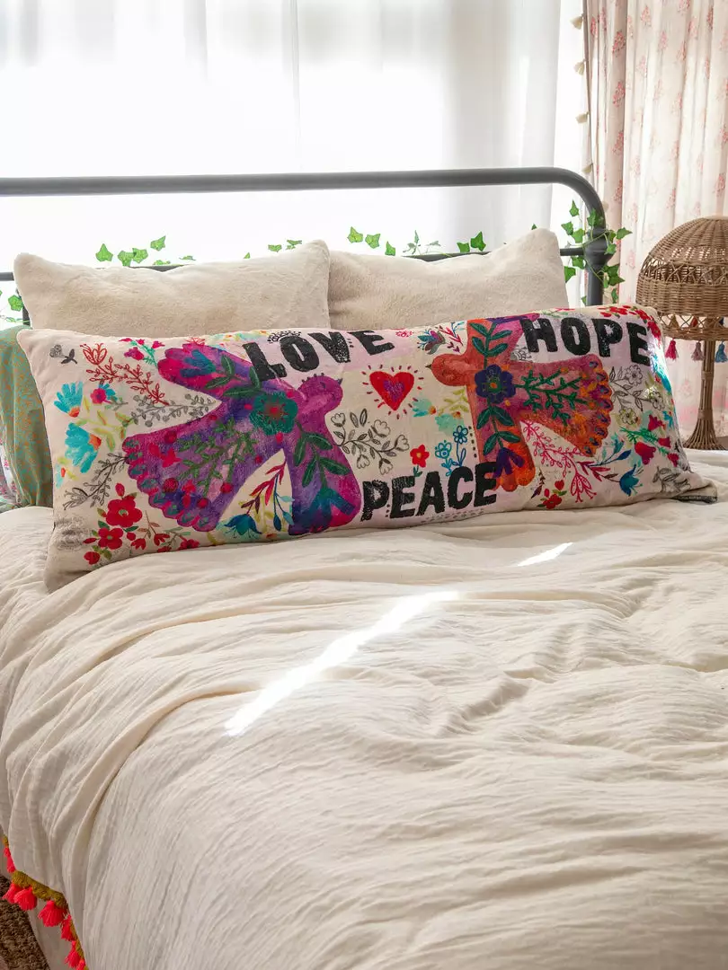 We made it SO easy for you to make your old body pillow new again! We love that you can buy a body pillow from anywhere and use our cute cover to make it look completely different! It’s so easy to put on & take off to throw in the wash. The Cozy Body Pillow Cover features a sweet sentiment and colorful artwork and looks so cute thrown on your bed and paired with our other boho pillows!