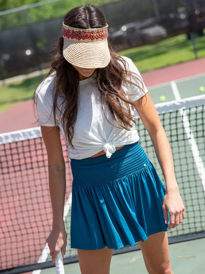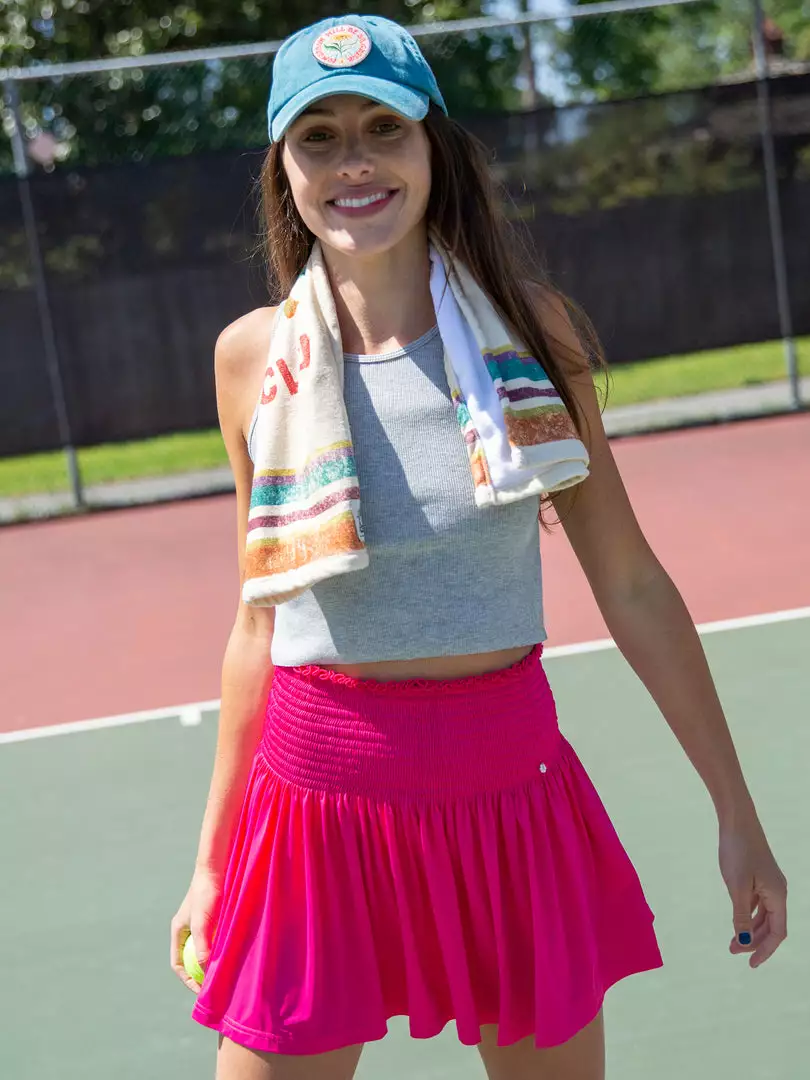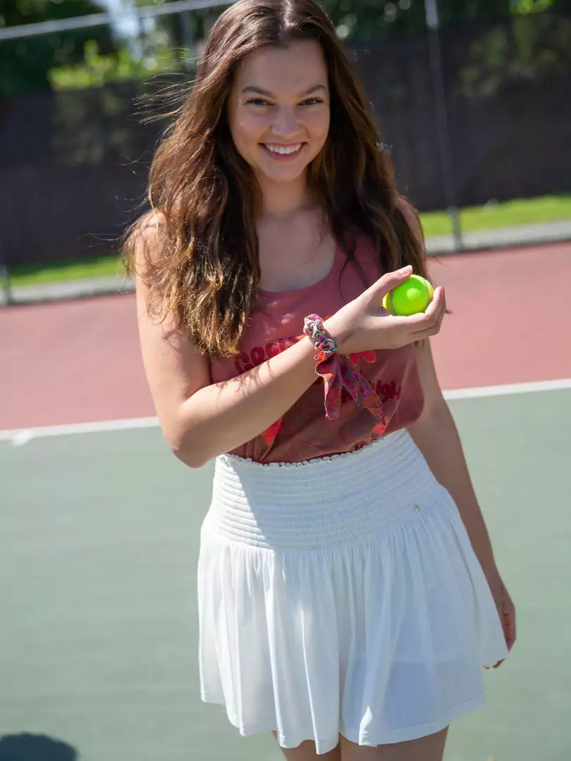 You loved the Daisy Skort so much, we made a Tennis Skirt! The Daisy Athletic Skirt is a sportier version that has a soft fabric blended with spandex that’s super comfy and stretchy. The smocked waistband and built-in shorts make them perfect for Tennis, Pickle Ball or any activity that requires wearing something comfortable. They even have the cutest beaded daisy charm on the waist… you’ll want one in every color!