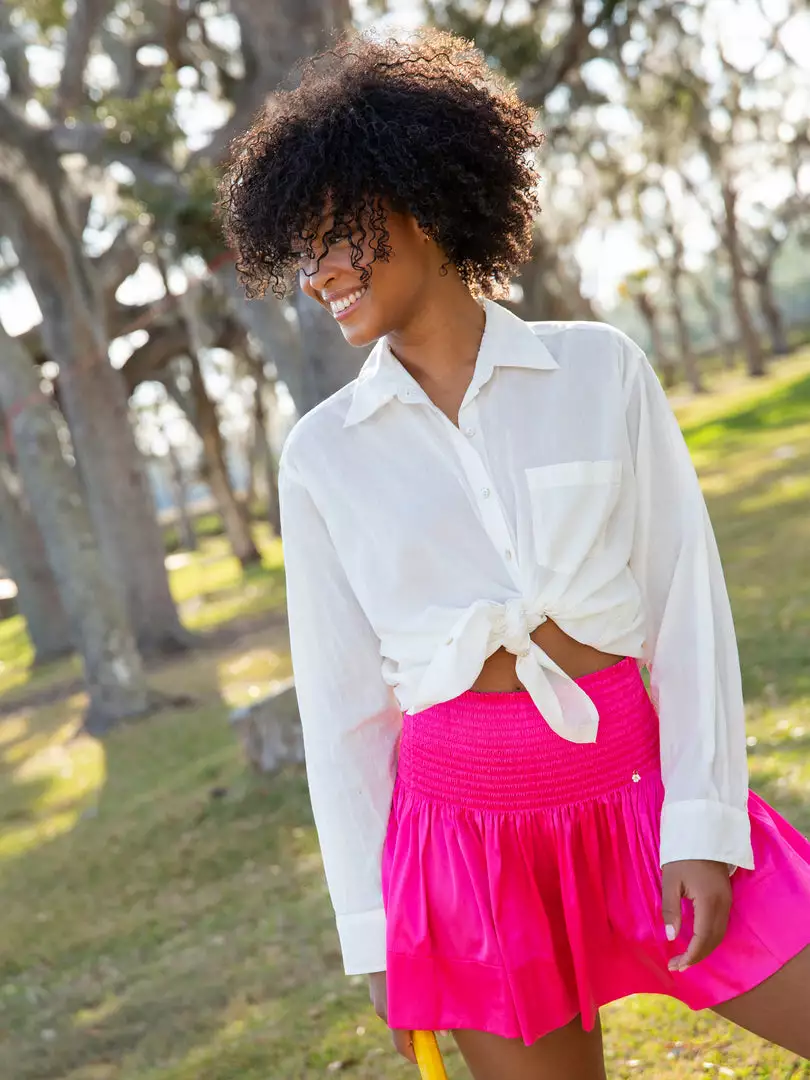 You spoke & we listened! We heard from so many of you that you wanted these skorts to fit more snug, so we improved the sizing! The Daisy Skort is so cute and features a smocked waistband and the cutest beaded daisy charm on the waist. They are great for wearing out and about during the day or can easily be dressed up and worn out at night. We just love them!