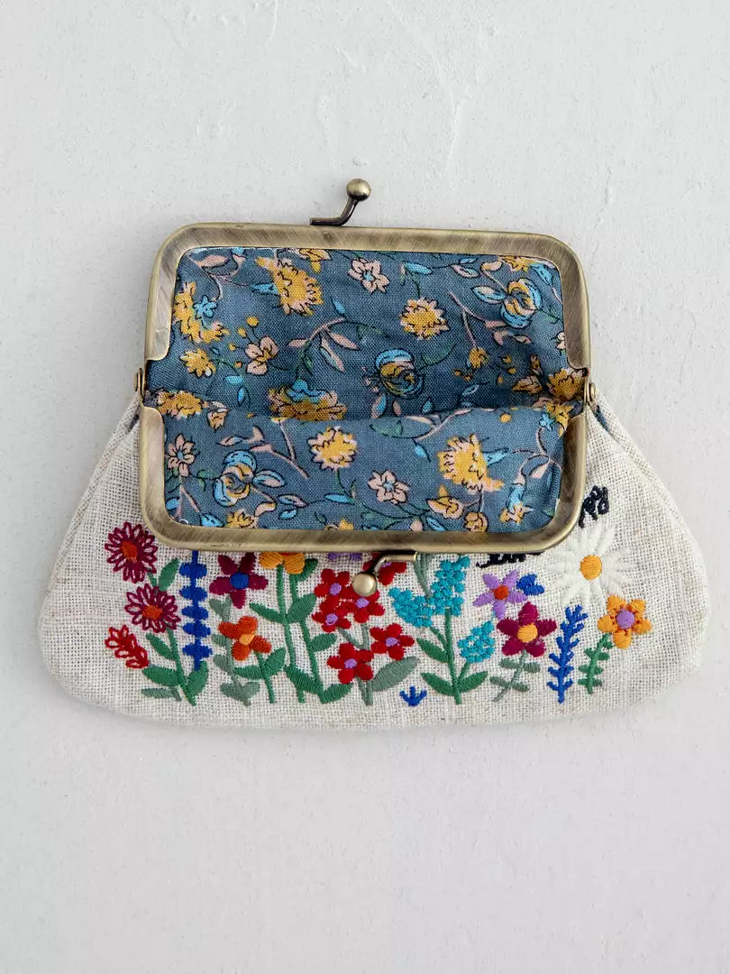 This cute Embroidered Coin Purse is perfectly sized for your coins, ear buds, jewelry & tiniest things! It features the prettiest embroidered design, a kiss lock closure and is printed inside! It’s awesome to just throw in your bag… you can always find those little things when you need them, no need for digging!