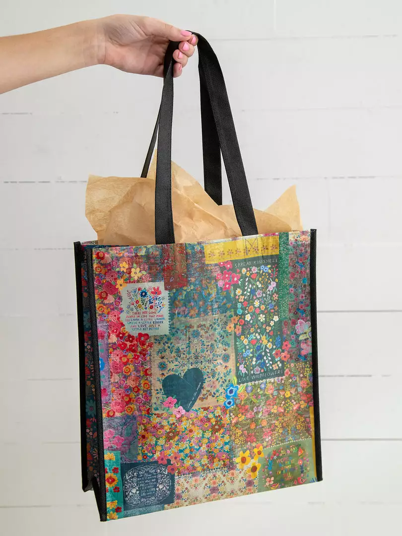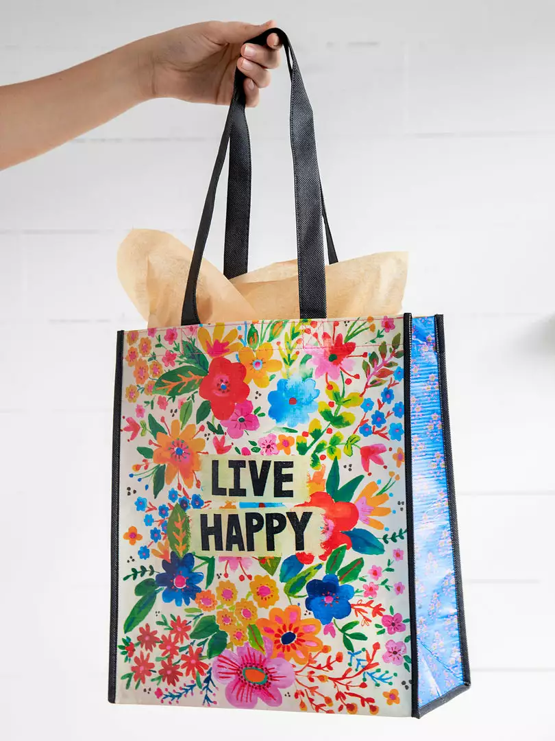The best gift is a Happy Bag full of Natural Life treasures! Why use a boring gift bag when you can make your gift even cuter with a Happy Bag? Choose one of our colorful prints or sweet sentiments to express how you feel and make them feel loved! The giving can keep going, because it’s made from recycled water bottles, so it lasts forever! The Extra Large Happy Bag is just the right size for a cozy blanket, sweatshirt, or anything else! Keep some in your trunk to use at the Farmer’s Market or grocery store! They’re perfect to collect and store in your gift closet for later too. Take the frustration out of gift giving and keep an assortment of Happy Bags on hand!