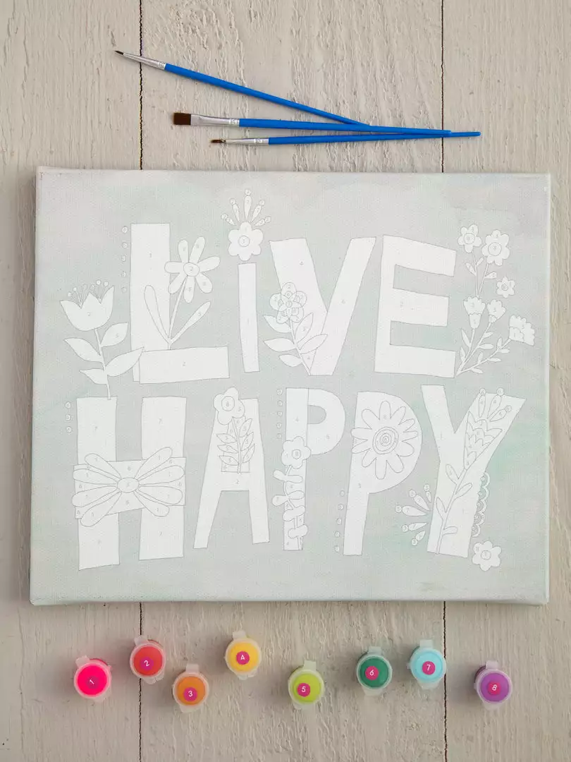 We made a Paint By Numbers Kit! It’s the perfect creative hobby for anyone, even if you haven’t held a paintbrush in years! Everything you need is included… 8 beautiful paint colors, 3 brushes and the art comes on a mounted canvas that you can easily hang up right away! You can even use coffee and a sponge to stain the edges for a vintage look! It’s so therapeutic and fun to create your own little work of art to hang anywhere!