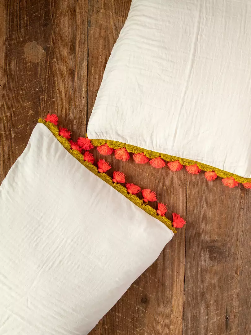The Isabel Gauze Shams feature a beautiful soft cotton gauze and tassel trim for a fun pop of color! They look so cute paired with the Isabel Gauze Duvet Cover to make a set or you can mix and match with any of our cute bedding!