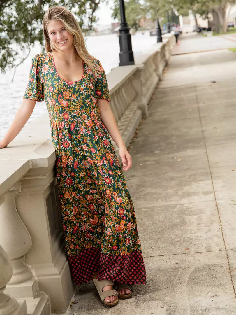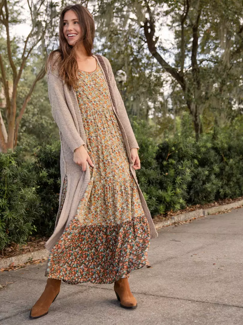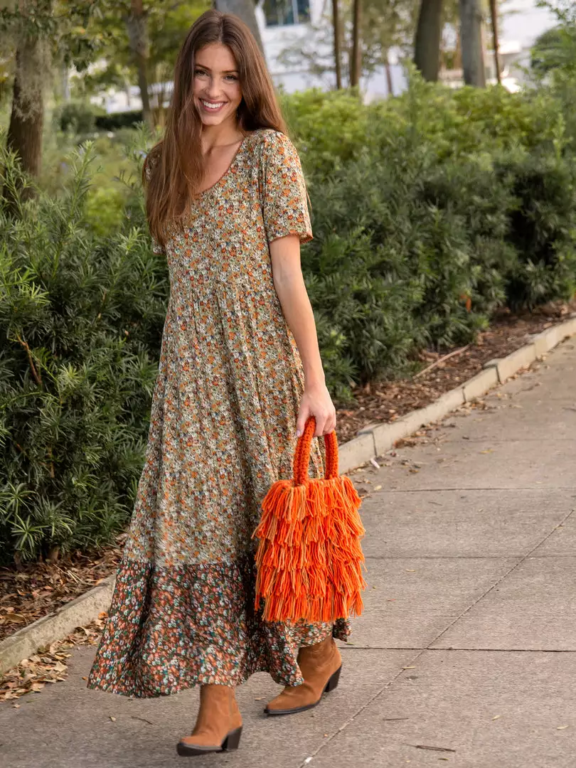 Meet the easiest dress you’ll ever wear! The Lucia Maxi Dress features the prettiest bohemian floral print, puff sleeves, a scoop neckline and dainty scallop lace trim along the neck and sleeves! The fit is super relaxed and comfy and the tiers make it so flowy and fun to wear! It’s literally the perfect everyday dress!