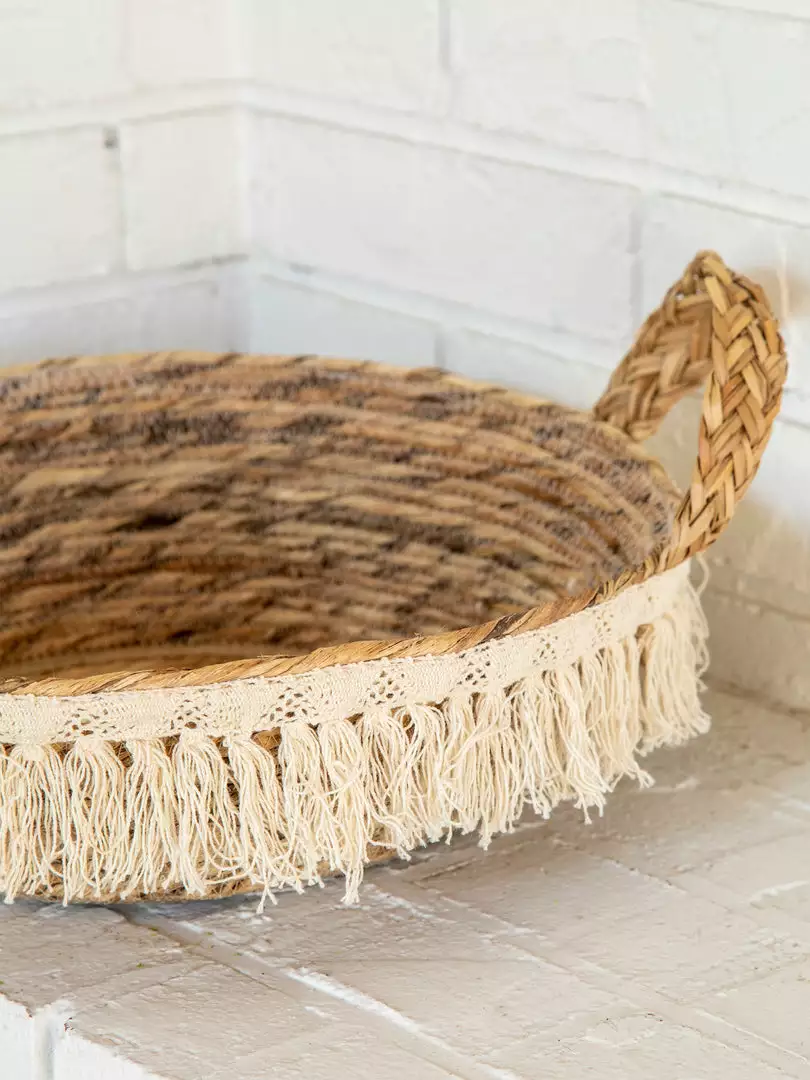 We love cute & functional baskets… like the Macrame Fringe Basket! The large one is perfect for towels, throw blankets and rolled scarves and the small one is an awesome kitchen counter or coffee table basket for fruit, remotes and books!