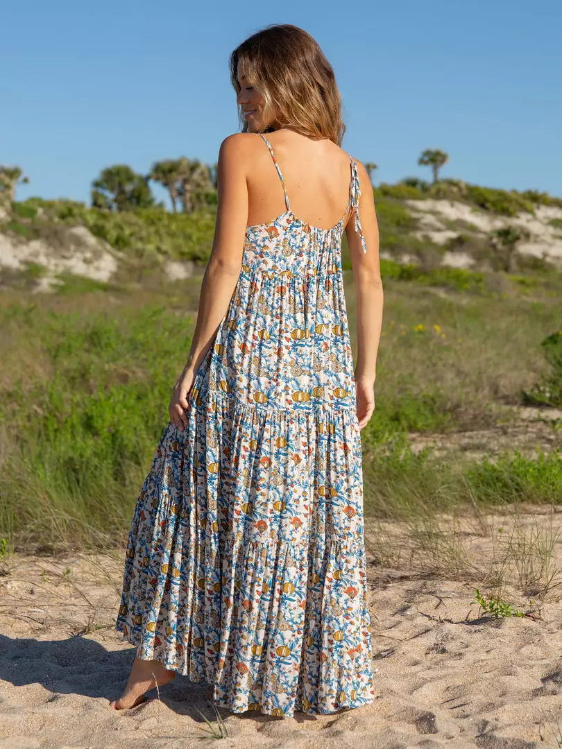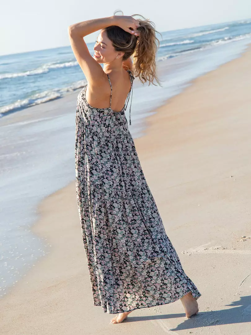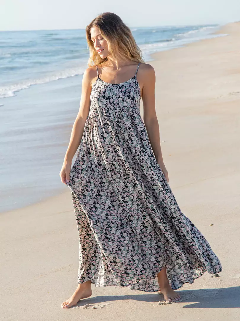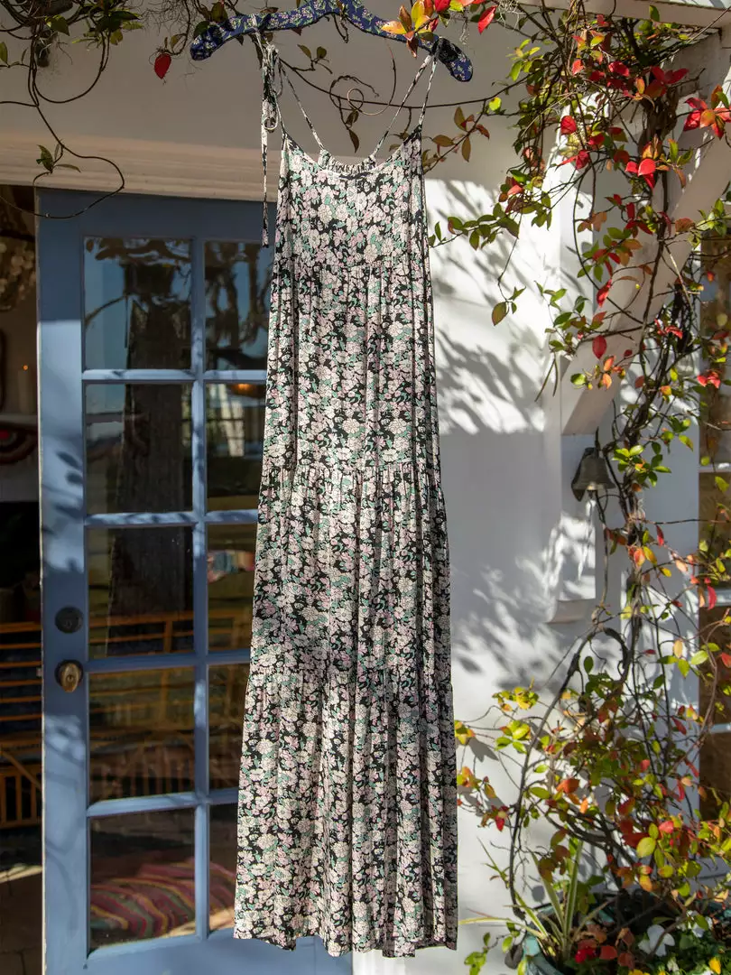 Who doesn’t love an easy dress? The Madi Slip Dress features a sweet boho floral print, tiers and an adjustable tie on one shoulder. It’s maxi length and is so flowy and feminine. It’s one of our favorites for sure!