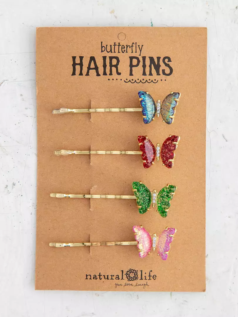 These Butterfly Bobby Pins are like little butterfly kisses for your hair! They come as a set of 4 and are perfect for holding all your wisps and keeping them out of your face. They look so cute tucked into your bun or ponytail! Wear them alone or mix and match with our other hair accessories for a fun look!