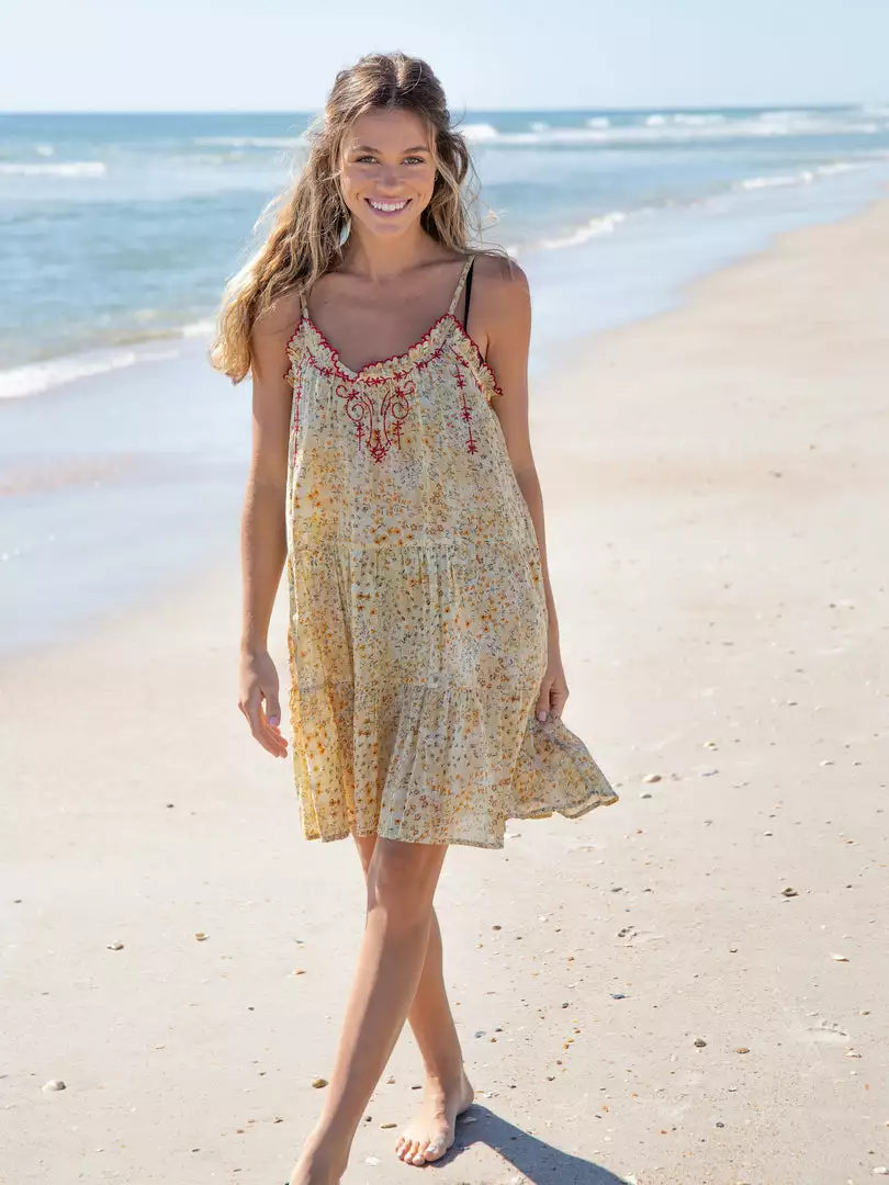 We love a good flouncy mini dress! The shape of the Embroidered Harley Cover-Up is one of our favorites yet! It has flowy tiers, adjustable straps, and is generously cut! It’s semi-sheer & looks so good layered over jean shorts, or it makes the cutest house dress or bathing suit cover-up!