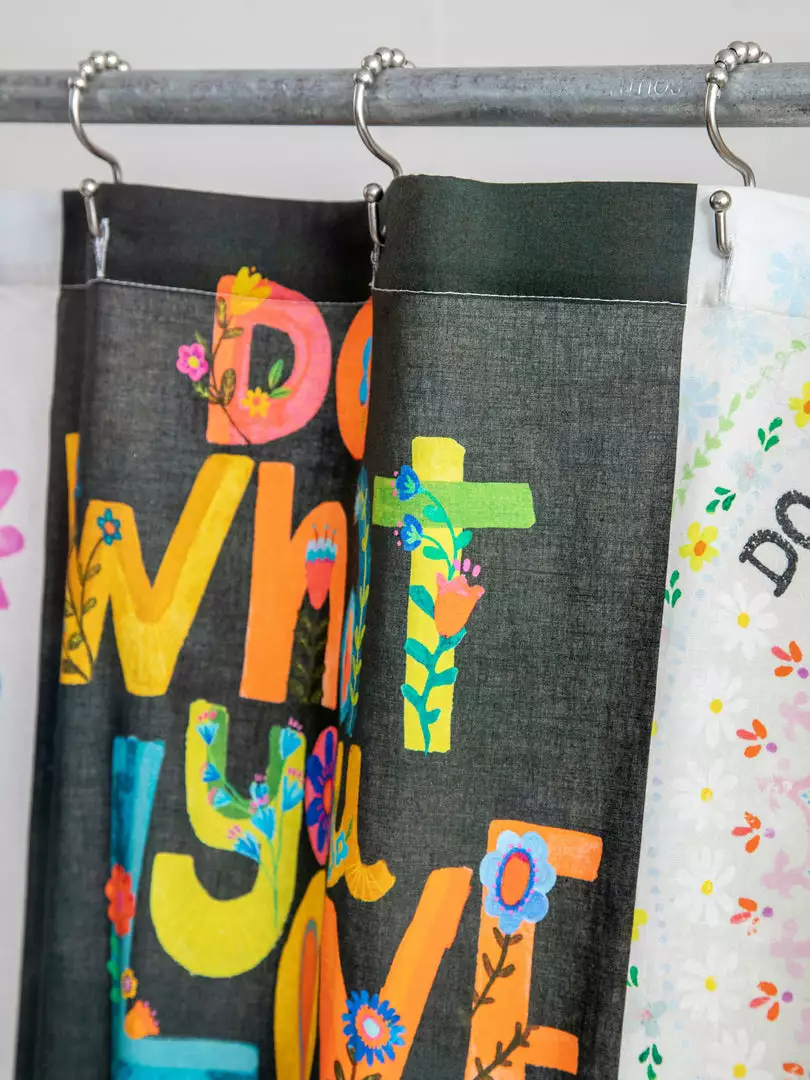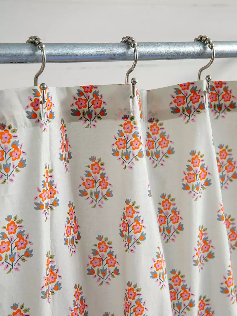 Brighten your bathroom with our boho-inspired Shower Curtains! We LOVE the quality and it comes rolled up and packaged with a ribbon, making it ready to gift to someone you love! It’s super easy to wash and it comes unlined, so we recommend pairing with a liner! Curtains do not come with hooks.