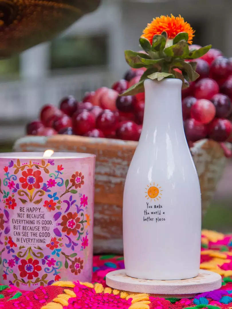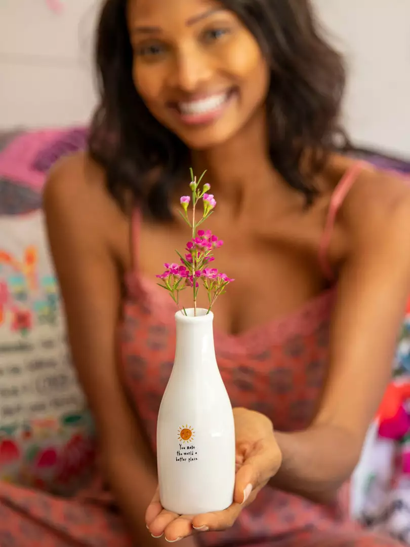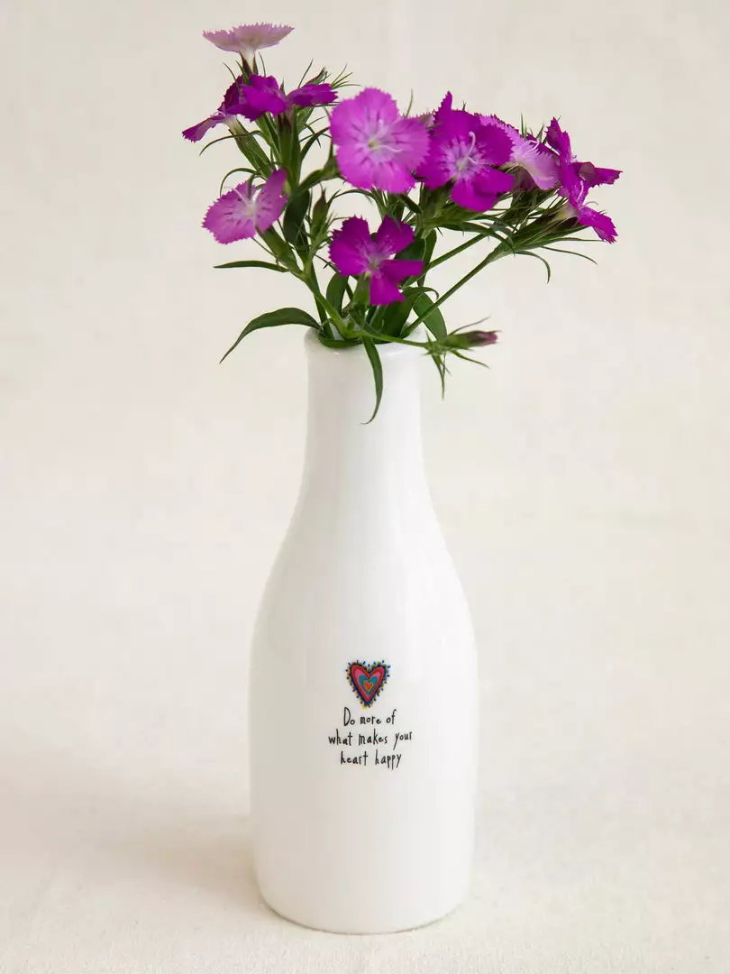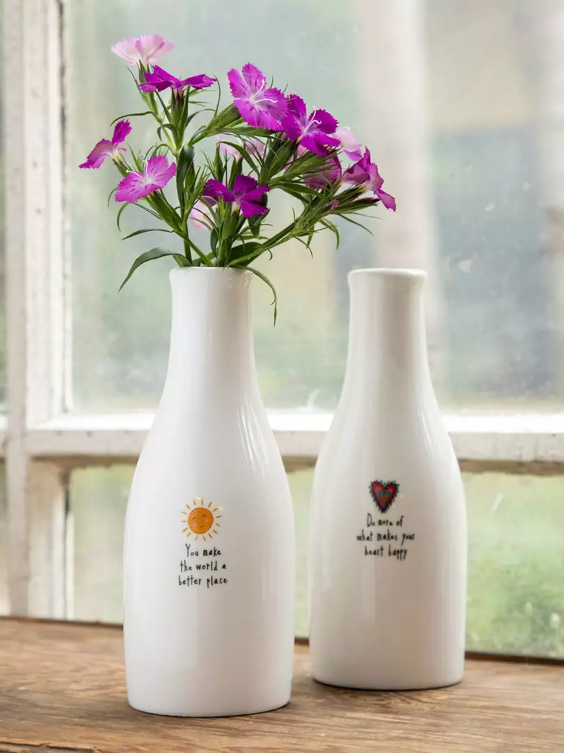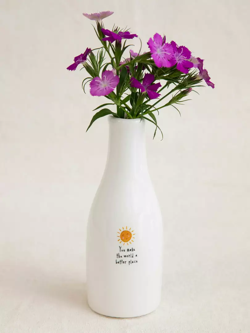 A sweet little bud vase makes for a thoughtful gift, especially when you give it with a pretty flower inside! This Bud Vase has a hand-crafted look and features a sweet sentiment… making any space a little bit brighter!