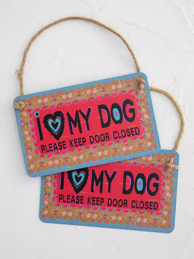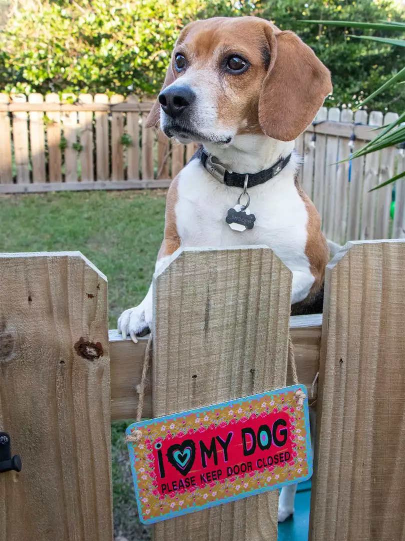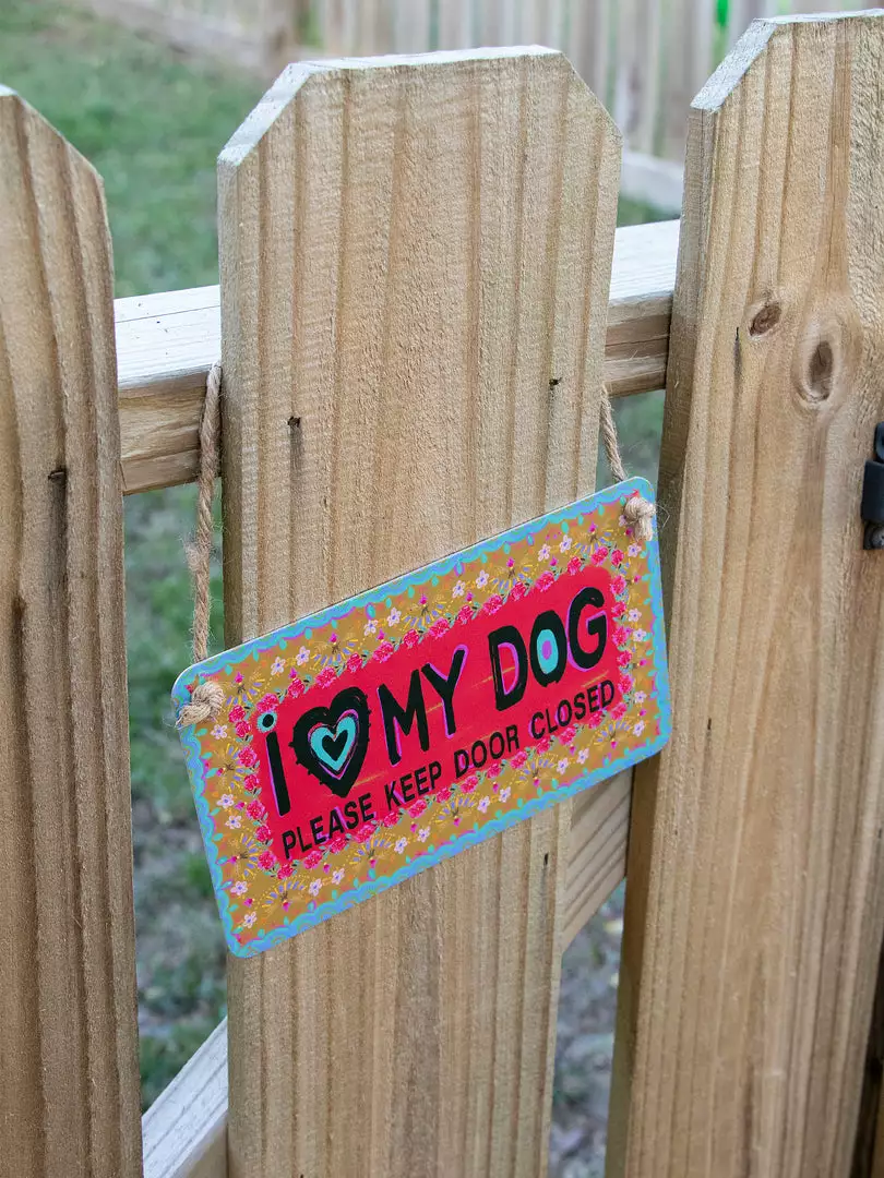 Set of 2 Signs, one for each gate! They are coated metal (so they can hang outside without getting damaged!) and painted with a sweet sentiment and reminder to close your front or back gate so your dog can’t escape! It also looks super cute hung on your front door as a welcome sign!