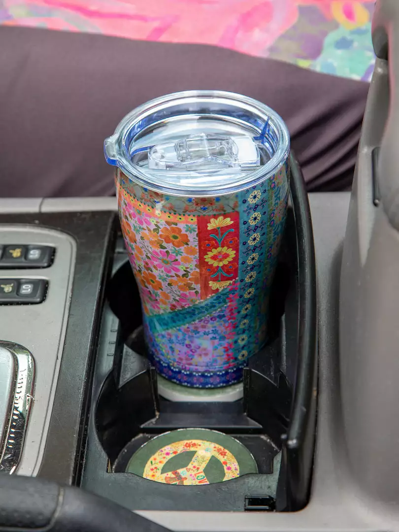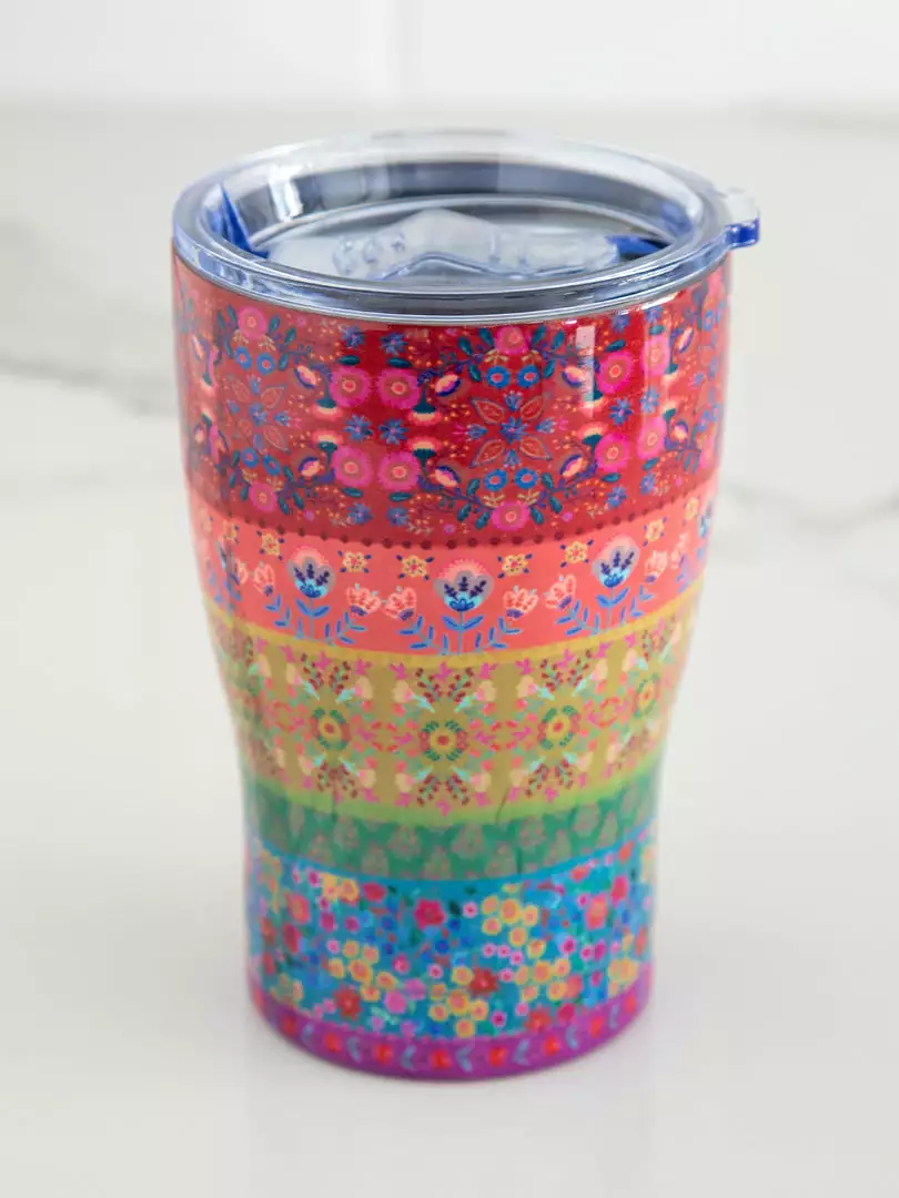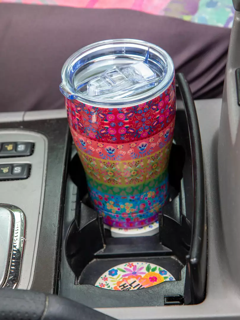 So cute and functional! Our Tumblers are BPA free, stainless steel and double-wall insulated so your drinks stay ice cold or piping hot all day long! It holds 20 ounces and has a spill-proof lid…which everyone loves!!